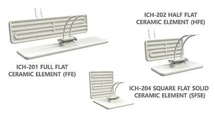 Bộ phận làm nóng điện trở sứ máng hồng ngoại là bộ gia nhiệt có nhiệt độ cao, tuổi thọ bền. Trong ngành công nghiệp hiệ đại bộ làm nóng điện trở sứ máng có thể đáp ứng yêu cầu về nhiệt độ làm việc ngày càng cao đặt biệt là sợi hóa học, nhựa kỹ thuật, máy móc ngành nhựa, điện tử, y tế, thực phẩm... Bộ phận làm nóng điện trở sứ máng bằng dây điện trở xoắn ốc thông qua gạch men chịu nhiệt độ cao được thiết kế đặc biệt tạo thành lớp cách điện.